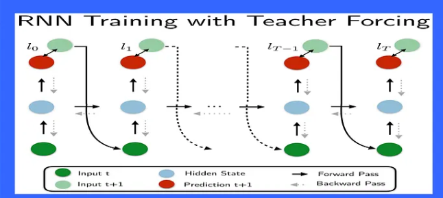 디코더 학습 시 이전 시점 출력값 대신 실제 정답 시퀀스의 토큰을 다음 시점의 입력으로 강제로 넣어 주는 방법입니다. 이렇게 하면 디코더가 점차 정확한 문맥 정보를 기반으로 학습할 수 있어 누적 오류를 줄이고 학습 안정성을 크게 올립니다. 반면, 테스트(추론)에서는 디코더가 이전 시점의 예측값을 입력으로 사용합니다. 이 차이로 인해 발생하는 학습-추론 불일치 문제(exposure bias)를 해결하기 위해 다양한 개선 기법도 연구되어 왔습니다.