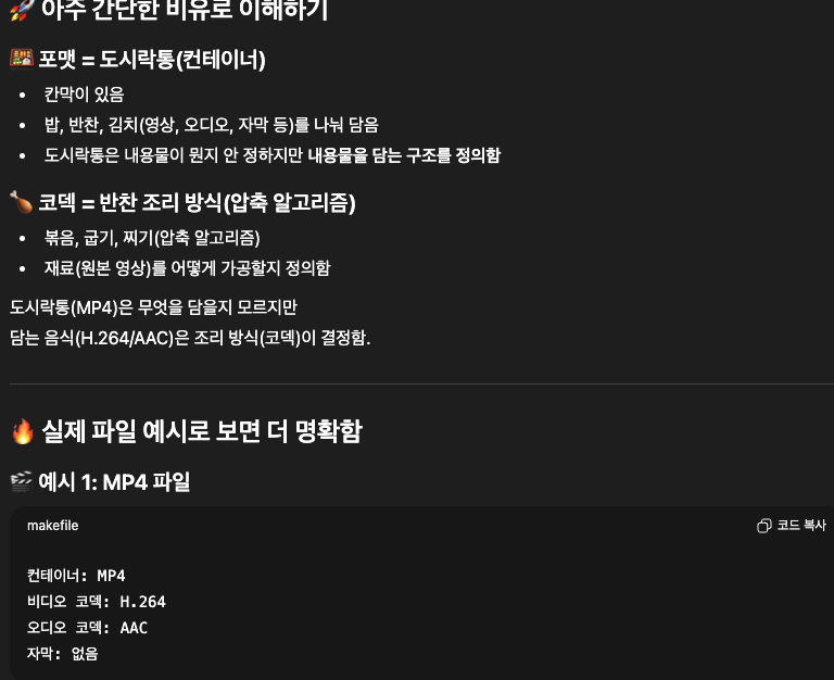 - 코덱을 사용하여 포멧에 저장시 저장되는 내용