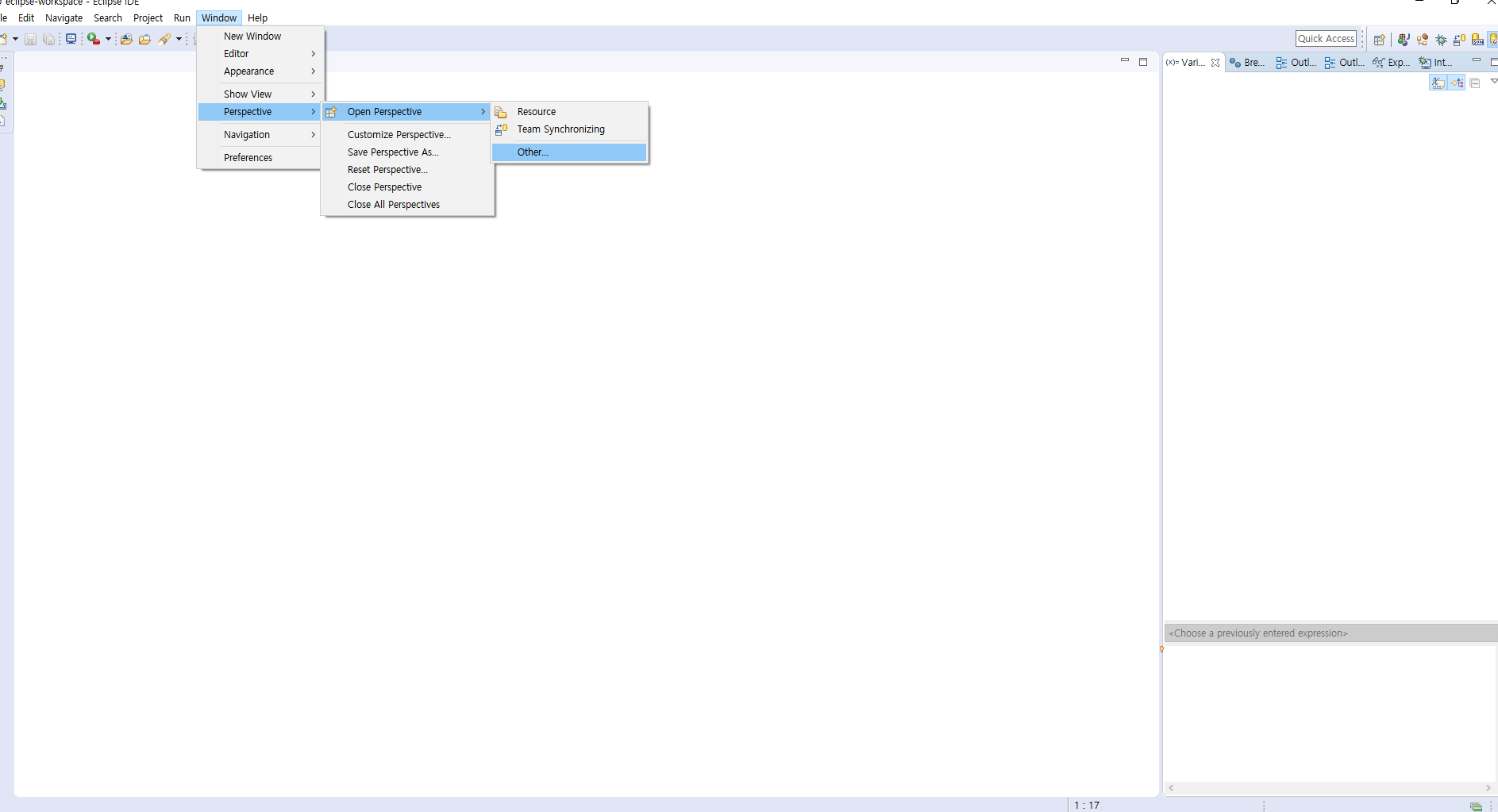 4. 이제 eclipse에 내가 진행하는 프로젝트를 실행 합니다.