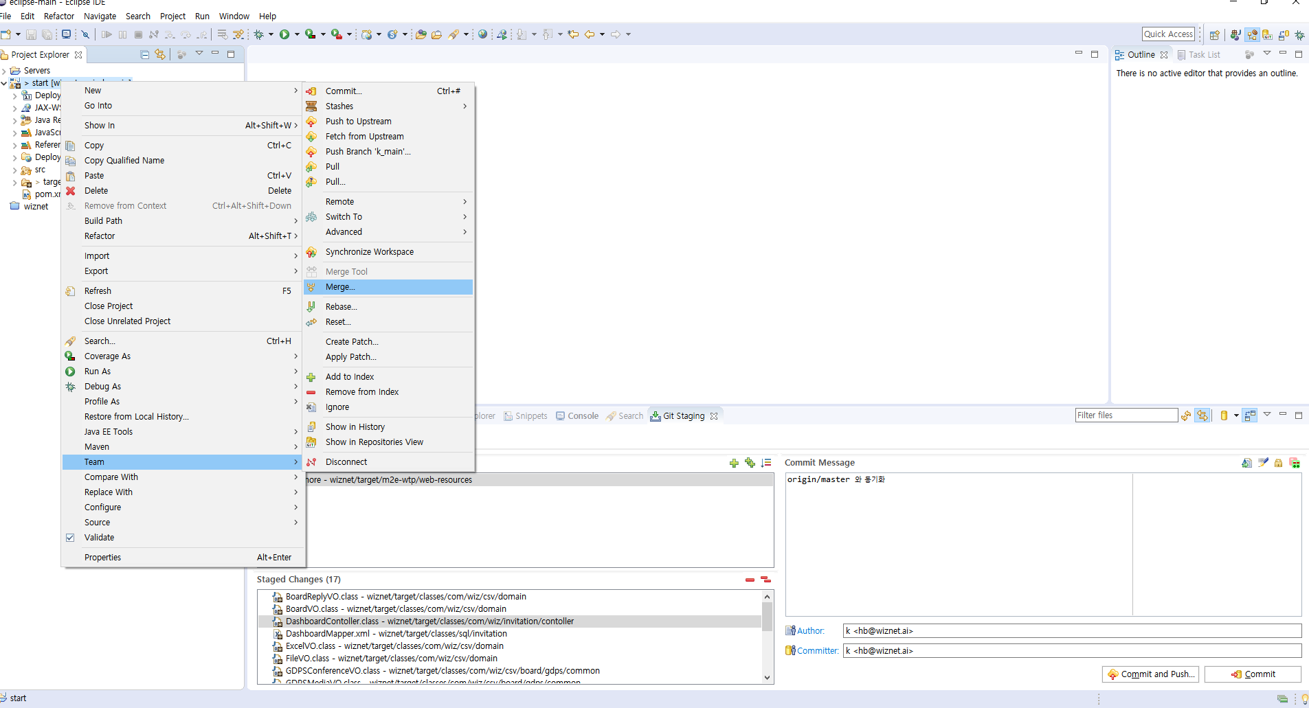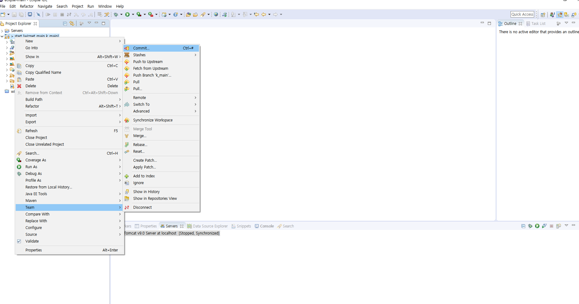 9. synchronize workspace ( master 브런치상태의 IDE와 비교 )
