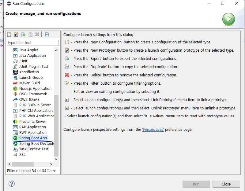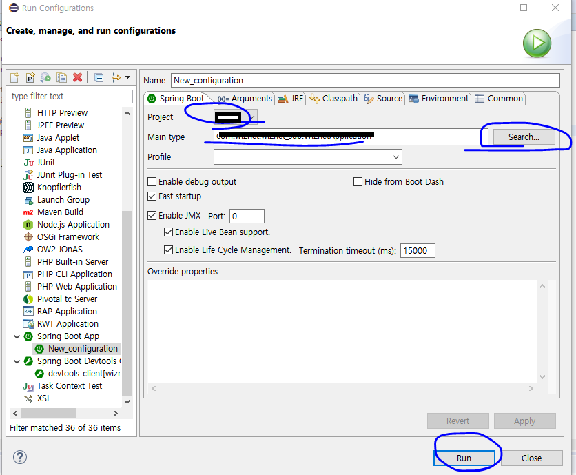 project와 MainType을 본인이 만든 프로젝트로 선택하시고 실행해주면됩니다