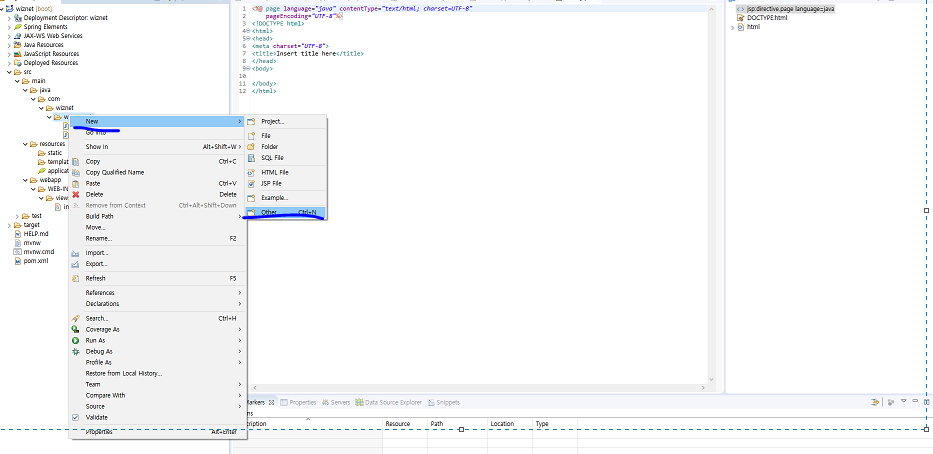 처음에 프로젝트를 보시면 Src 를 찾고 -> main 을 열면 java,resource,webapp 이렇게 있을겁니다