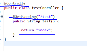 자바 파일에서 클레스위에 @Controller를 선언을 하고 test라는 요청을 받을 수 있게 @GetMapping("/test")를 추가해주세요