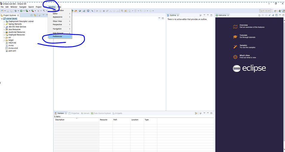 저는 Eclipse 19.06 버전을 사용하고 있습니다.