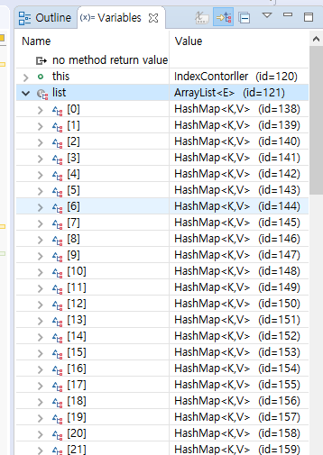 list라는 변수에 응답 값이 있는것을 확인할 수 있습니다.