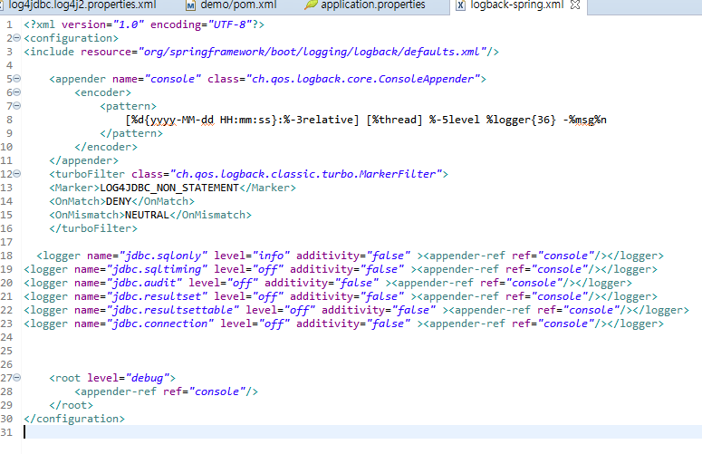 저같은경우 turboFilter 부분을 설정하지않으면 모든 로그가 root 레벨에서 전체 로그가 발생하여 원하지않는 모든정보까지 표시되는 문제가 있었습니다.