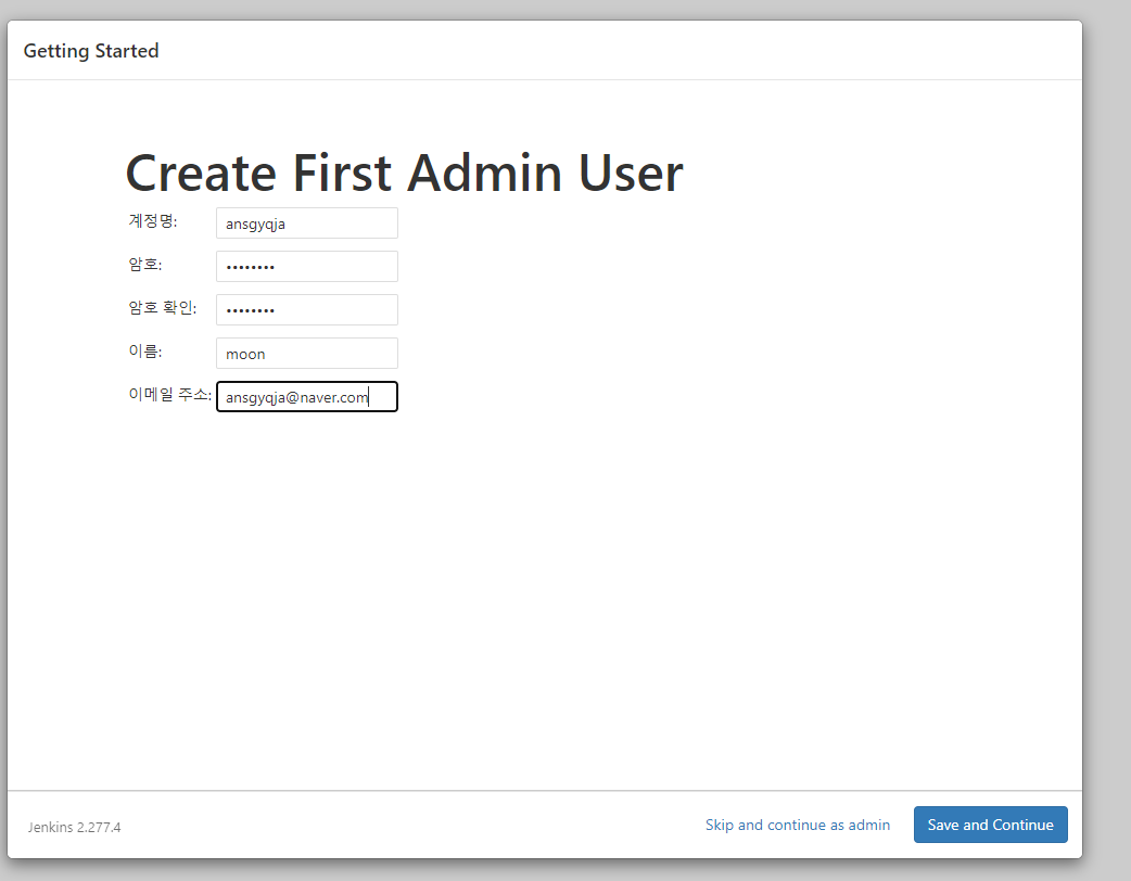 5. 젠킨스 관리자 계정 생성 및 접속 URL 설정