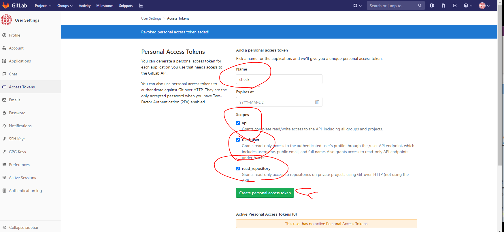 3. GITLAB 토큰가져와서 젠킨스에 등록해주기