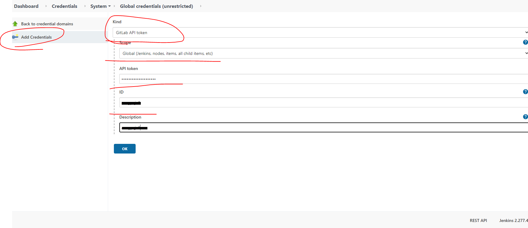만드신 키를 넣어 저장합니다. 나중에 젠킨스랑 깃랩이랑 실제 연동될떄 사용될 것입니다.