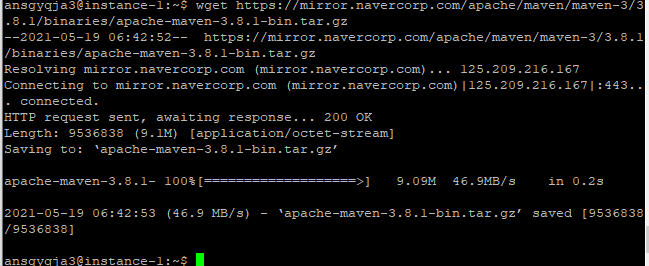 wget https://mirror.navercorp.com/apache/maven/maven-3/3.8.1/binaries/apache-maven-3.8.1-bin.tar.gz