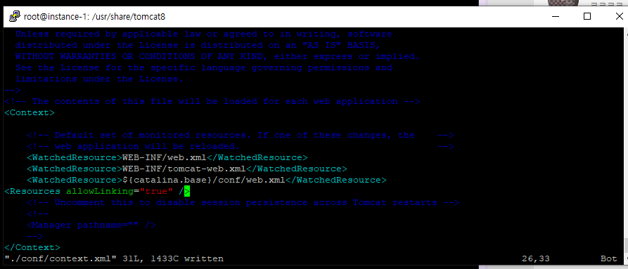 3. 톰캣이 심볼릭 링크를 읽을 수 있도록 설정해줍니다