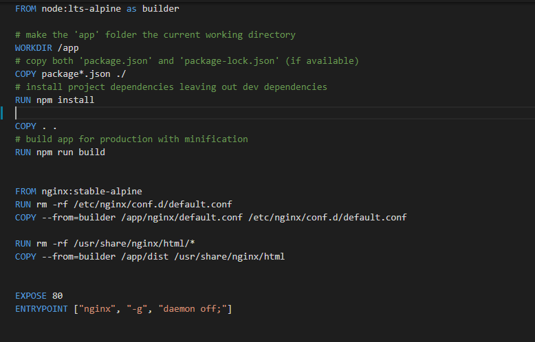 아래는 Dockerfile 내용입니다. 이 파일의 내역서에따라 도커 이미지가 생성됩니다