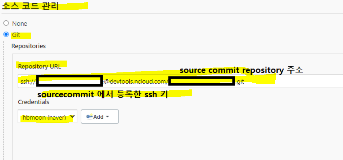 아까 jenkins에서 생성한 ssh key pair 중 id_rsa.pub 에 있는 값을 다시 복사하고 source commit으로 이동해주세요