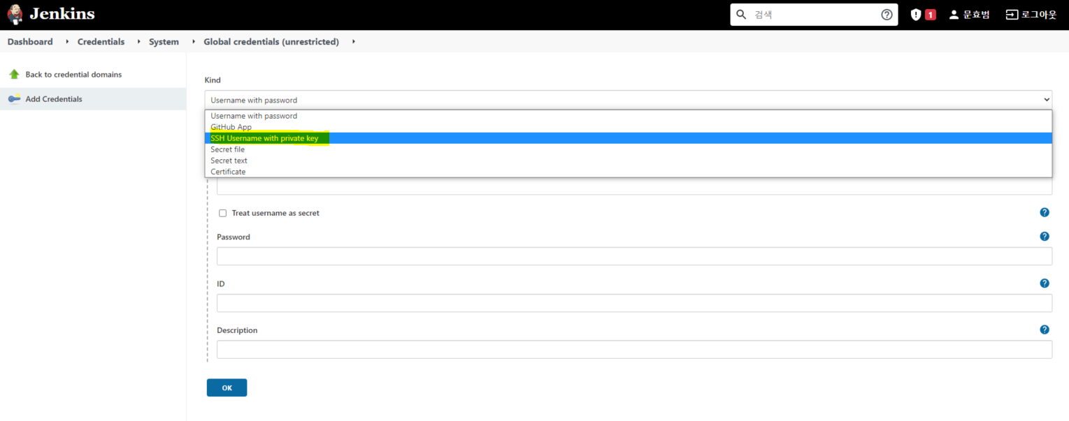 global credentials = > add credentials 클릭