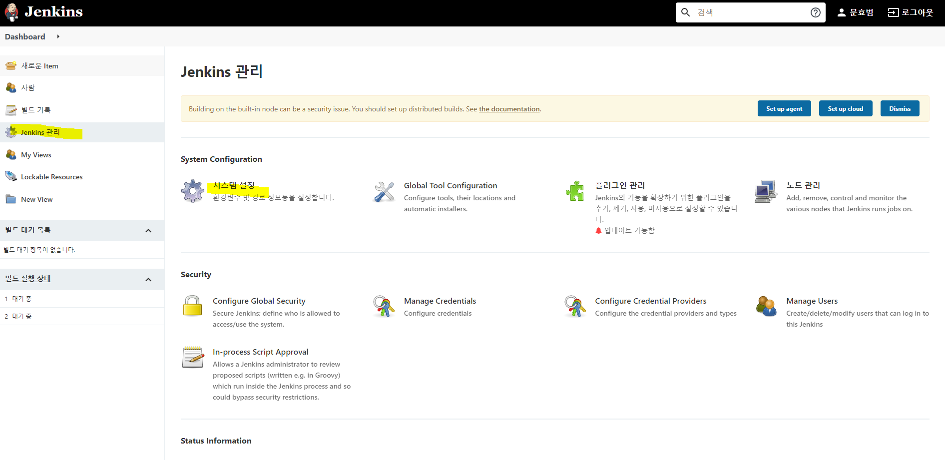 젠킨스를 웹으로 접속한 후 로그인