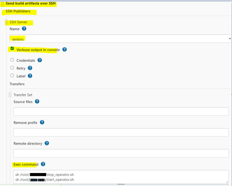 저는 파일을 원격서버로 넘길게 없어서 Exec command만 내용을 넣어줬습니다.