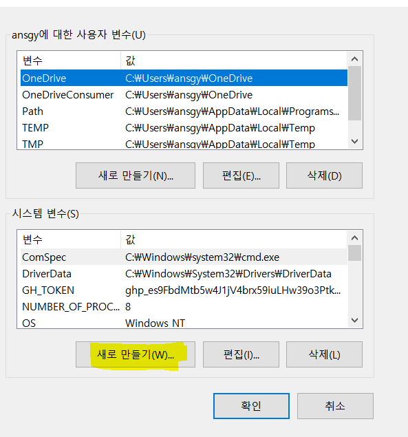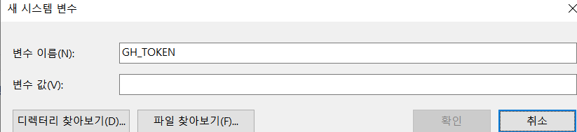 3.환경 변수에 GH_TOKEN 생성 및 컴퓨터 재부팅