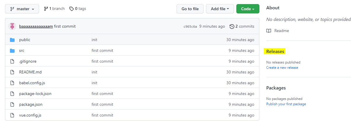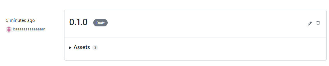 실제로 github에 들어가서 오른쪽에 release를 클릭하면 0.1.0 버전이 Draft 상태로 있는것을 볼 수있습니다.