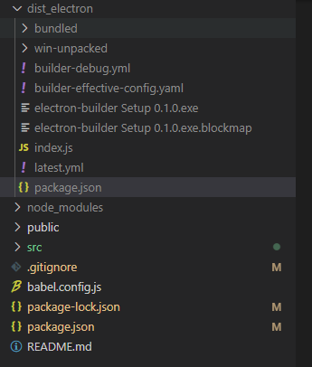 이번에는 electron-builder Setup 0.1.0.exe 등 파일들이 생긴 걸 볼 수 있습니다