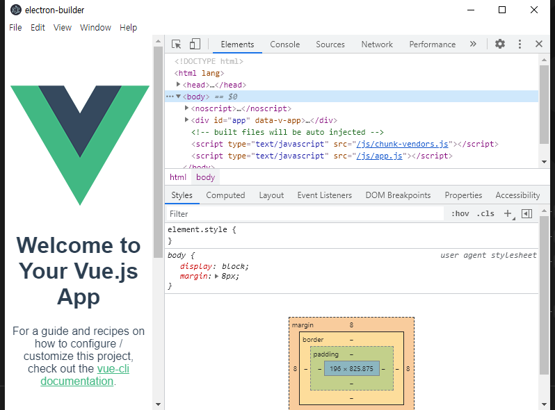 그 다음은 vue create electron-builder 로 프로젝트 생성