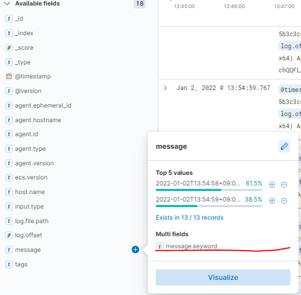 만약 위 화면이 안뜨고 다른 3개의 선택지를 고르라는 화면이 뜨면 filebeat로부터 log index를 못받은것입니다