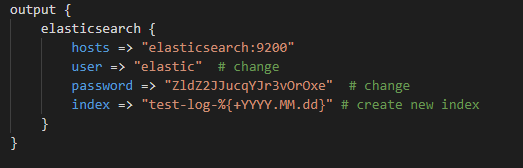그리고 kibana/config/kibana.yml 과 logstash/config/logstash.yml , logstash/pipeline/logstash.conf 의 패스워드를 위에서 받은 console의 값과 매칭 하여 를 각각 바꿔주세요