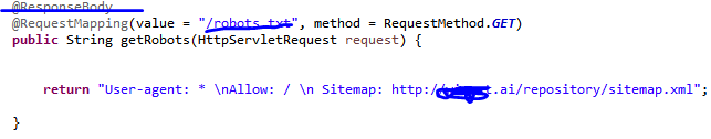이것 저것 검색해보던중 찾아본 자료에서 GOOGLE SEARCH CONSOLE에서 크롤링을 하는데 Robots.txt 설정이 검색되어야 정상적으로 처리된다고 하여 아래와같이 Robots.txt 설정도 해주었습니다.