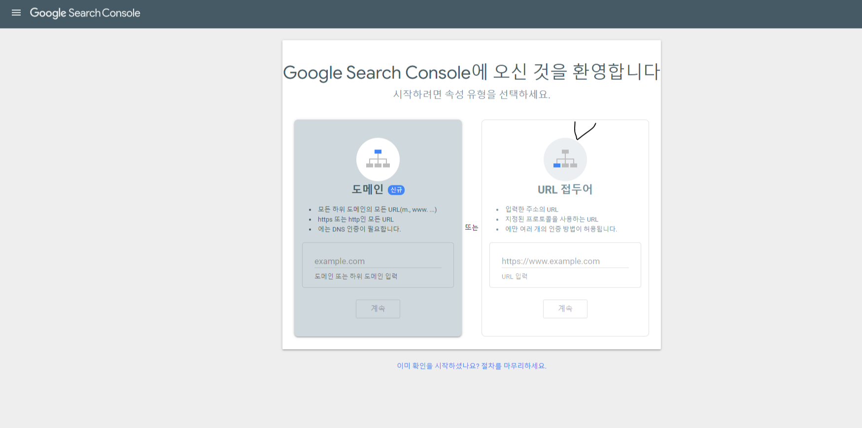 4. 자신의 URL 을 입력한 후 계속을 누르면 아래와같이 표시됩니다.