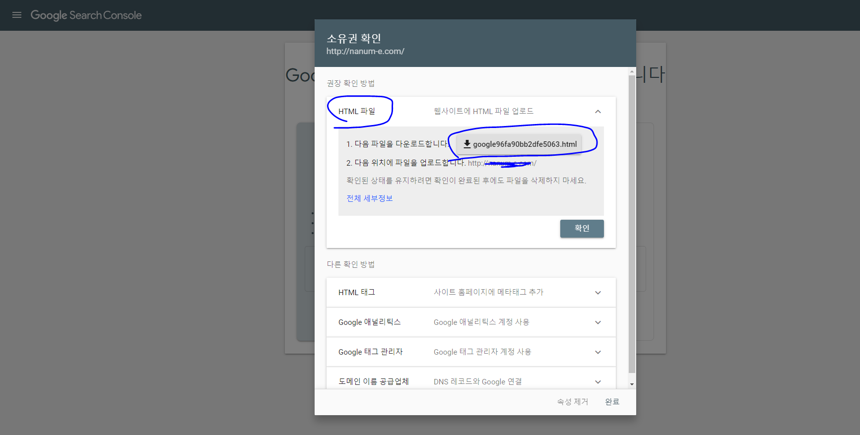 위에보시면 Google Search Console에서 준 파일을 서버에올려 반환하라고 되어있습니다.