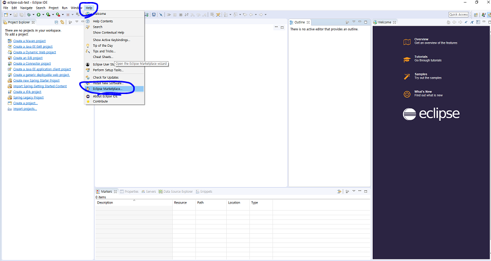 저는 Eclipse 19.06 버전을 사용하고 있습니다.
