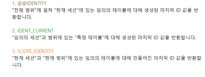 @@identity 말고도 IDENT_CURRENT , SCOPE_IDENTITY등이존재한다고한다.
