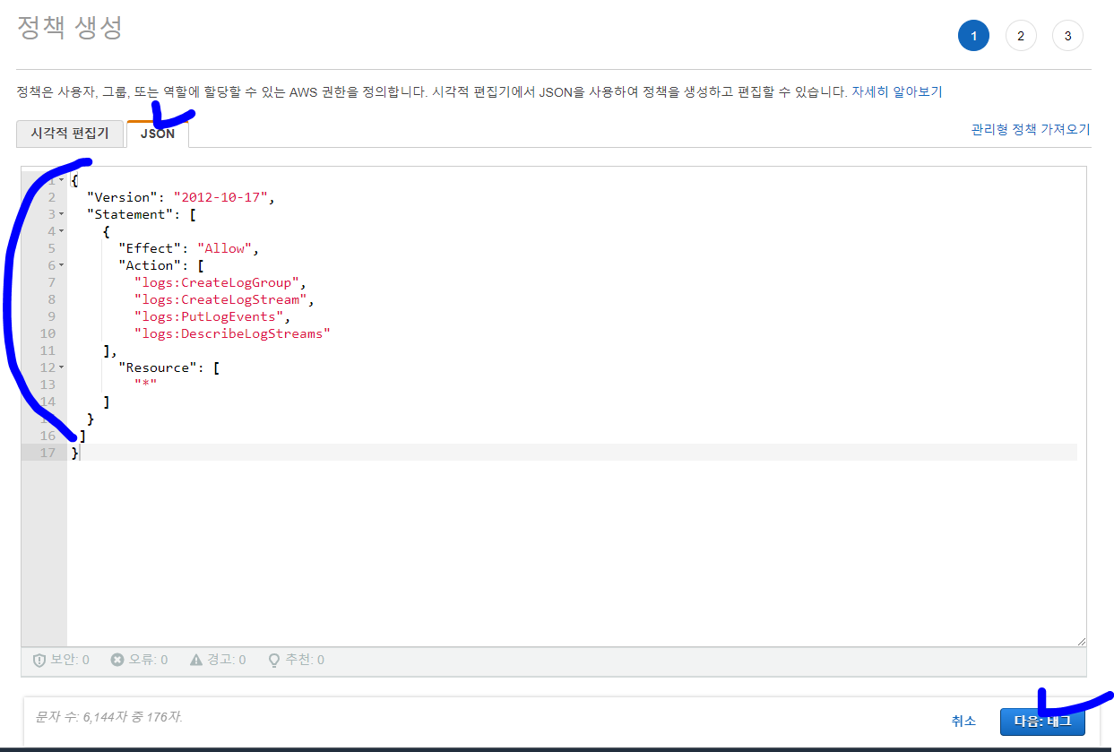 IAM -> 엑세스 관리 -> 정책 -> 정책 생성