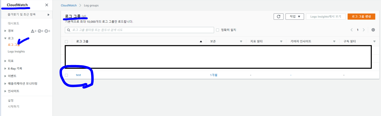 Destination Log Group name [ 로그 그룹에서 보여질 이름 ex) /testLog ]